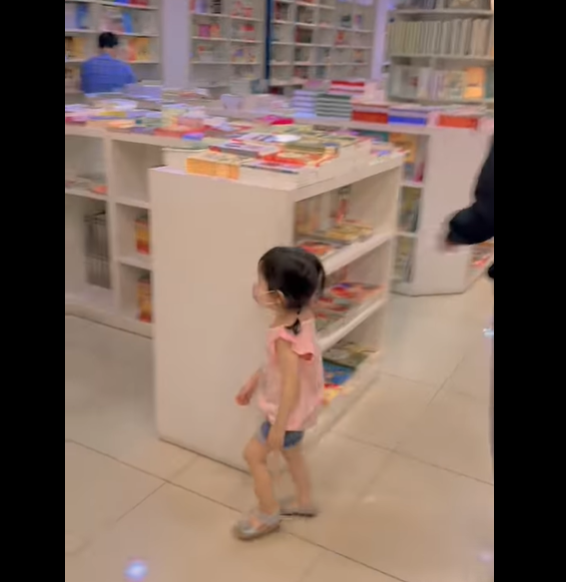 Suốt đoạn video, Trường Giang bé Destiny xuống và để cô bé chạy nhảy, tuy nhiên cô bé hầu như quấn lấy Trường Giang không rời nửa bước. Nam danh hài cũng rất cưng chiều Destiny khi cõng, bồng bế và luôn theo sát nhóc tỳ khi dạo chơi tại nhà sách.