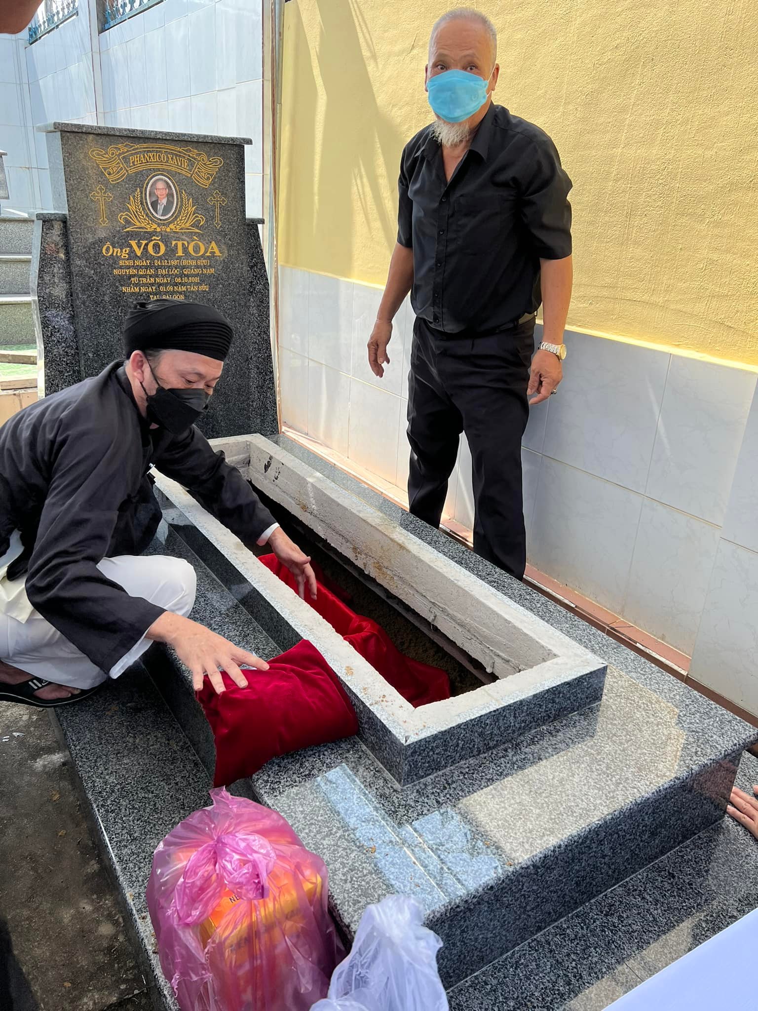 Qua loạt ảnh được em trai Hoài Linh chia sẻ, nam danh hài diện áo dài truyền thống màu đen kính cẩn làm lễ an táng cho bố ruột. Ông tự tay làm tất cả các việc bày trí đến chôn cất đồ đạc của đấng sinh thành. Trong buổi lễ còn có sự xuất hiện của ca sĩ Đàm Vĩnh Hưng. Anh cũng được gia đình Hoài Linh và Dương Triệu Vũ xem như một người thân không thể thiếu trong nhà.