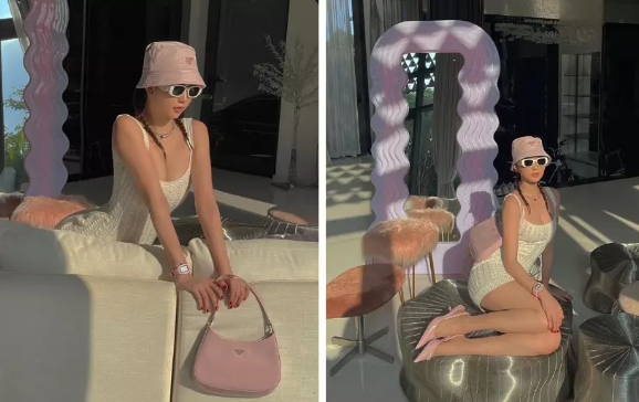 Trước đó, mỹ nhân Trà Vinh trở thành tâm điểm chú ý khi sử dụng chiếc gương nhái đến từ thương hiệu Poltronova. Dù sau đó, Ngọc Trinh đã mua "hàng real" để sử dụng nhưng vẫn vướng ý kiến trái chiều.