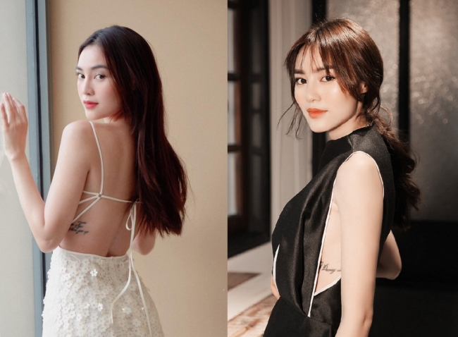 Nàng "ngọc nữ màn ảnh Việt" diện váy ôm sát gợi cảm với thiết kế hở bạo phần sau, chỉ quấn độc một sợi dây trắng ngang lưng, phô bày lưng trần nõn nà gợi cảm hết nấc. Đáng chú ý, dân tình dồn hết sự chú ý vào hình xăm gần eo của cô nàng. Được biết, đây là hình xăm đầu tiên được cô xăm ngay trên eo với nội dung đầy đủ là “Ninh Dương Lan Ngọc never give up”.