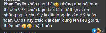 Phía còn lại cho rằng: “Vậy tại sao Hoài Linh chậm trễ đến bây giờ vẫn chưa hỗ trợ nhưng trong suốt thời gian qua im hơi lặng tiếng không thông báo đến mọi người, mà đợi đến lúc đụng chuyện thì mới đem ra trần tình? Kêu mọi người hãy tin vào sự minh bạch của Hoài Linh mà chơi cú này thì ai tin?"; “Không đi hỗ trợ miền Trung được nhưng sao vẫn thấy ảnh đi từ thiện đầu năm ?”.