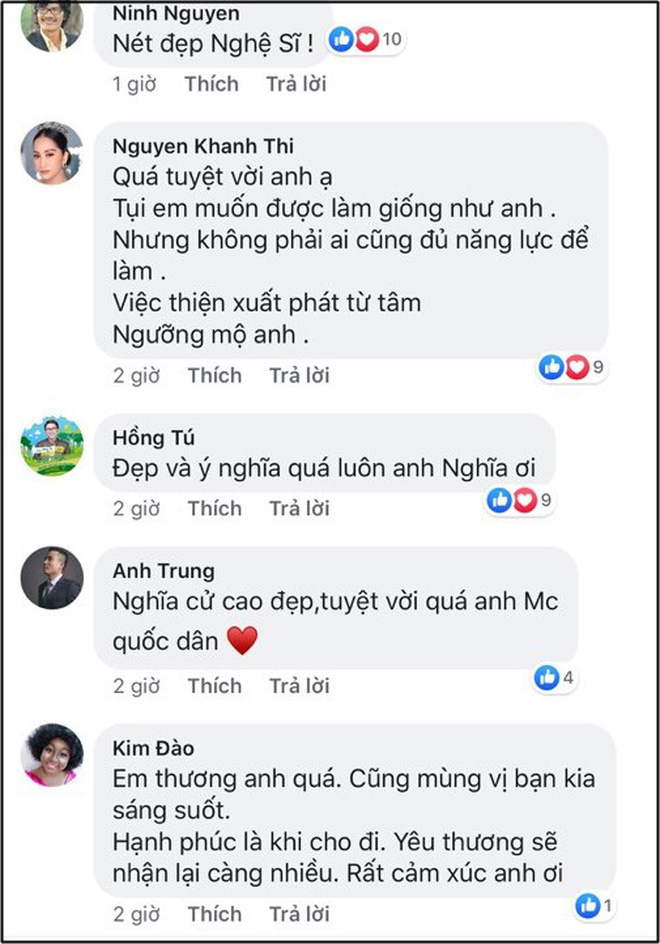 Thời gian qua, Hoài Linh hay Thủy Tiên liên tục bị CĐM "chất vấn" về vấn đề minh bạch những khoản tiền hỗ trợ bà con khó khăn, lũ lụt. Bên cạnh đó, vẫn có một nam nghệ sĩ được dư luận dành những lời khen có cánh cho những hành động và sự nhiệt tình của mình trong việc giúp đỡ những hoàn cảnh nghèo khó, đó là nam MC Đại Nghĩa.