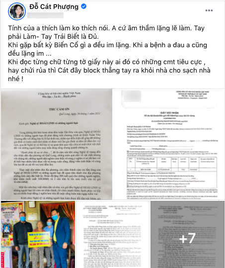 Trước đó vào ngày 26/5, Cát Phượng đang tải bài viết với nội dung: "Tính của anh thích làm, không thích nói. Anh cứ âm thầm lặng lẽ làm. Tay phải làm - tay trái biết là đủ. Khi gặp bất kỳ biến cố gì anh đều im lặng. Khi anh bệnh, anh đau, anh cũng đều im lặng. Khi đọc từng chữ từng tờ giấy này ai đó có những bình luận tiêu cực, hay chửi thì Cát đây block thẳng tay ra khỏi nhà cho sạch nhà nhé".