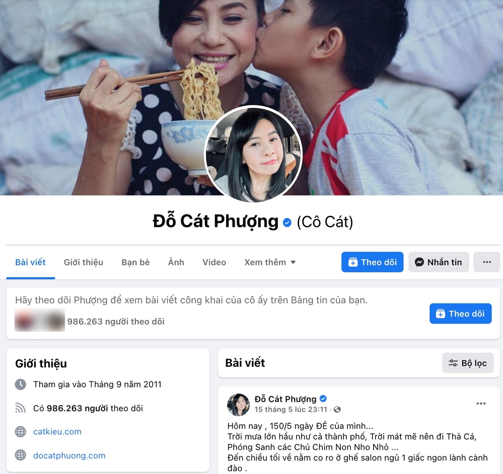 Tài khoản của Cát Phượng không còn xuất hiện bìa viết bảo vệ Hoài Linh.