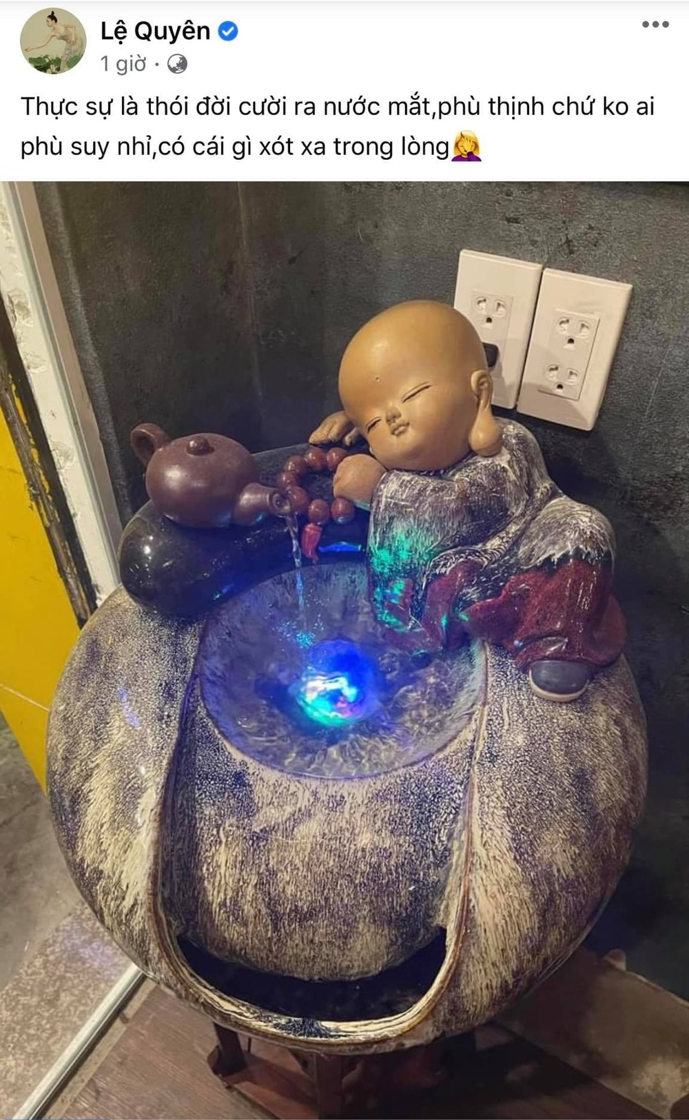 Trưa 26/5, Lệ Quyên đăng dòng trạng thái lên trang cá nhân với nội dung: "Thực sự là thói đời cười ra nước mắt, phù thịnh chứ không ai phù suy nhỉ, có cái gì xót xa trong lòng."