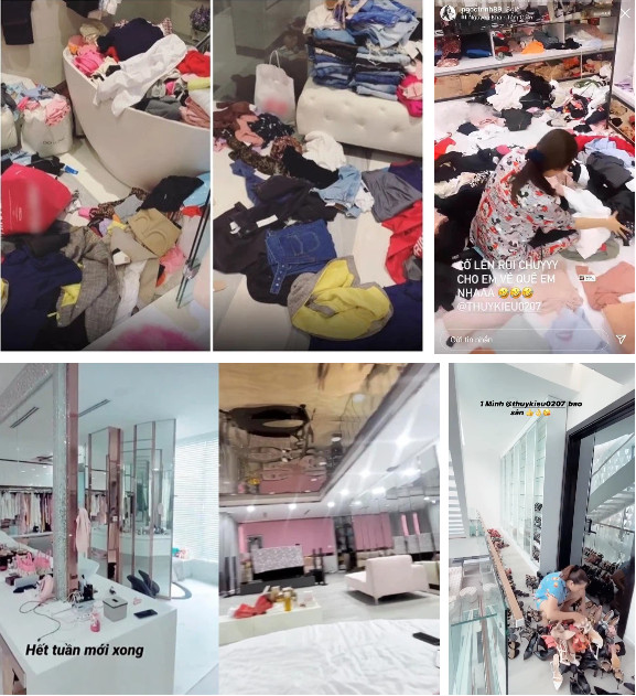 Mới đây Ngọc Trinh tiếp tục gây sốc vì toàn cảnh thực tế phòng đồ hiệu khác 180 độ so với các clip sống ảo. Đồ hiệu của Ngọc Trinh được đặt vô cùng lộn xộn dưới sàn nhà, chẳng khác gì... bãi chiến trường. Ngoài ra, các bàn đặt đồ make up của cô cũng trông không hề ngăn nắp đến nỗi chính chủ phải thừa nhận: "Bừa bộn quá, Thuý Kiều đâu rồi sao không dọn dẹp vậy."