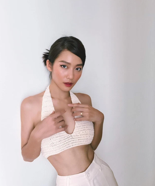 Lựa chọn cho mình bộ đồ 2 mảnh mỏng tang, Khả Nhân khoe vòng 1 ngồn ngộn trước ống kính. Cô phô bày được toàn bộ độ quyến rũ cũng như đường cong chữ S của mình mà không hề mang cảm giác phản cảm, khoe da thịt quá đà. Trong bộ bikini đen hai mảnh, nữ diễn viên khiến người hâm mộ trầm trồ vì vóc dáng chuẩn chỉnh, bốc lửa với 0% mỡ thừa. Và chiếm spotlight trong khung hình chính là đôi gò bồng đảo nảy nở, o ép khiến hội chị em phải ganh tị.