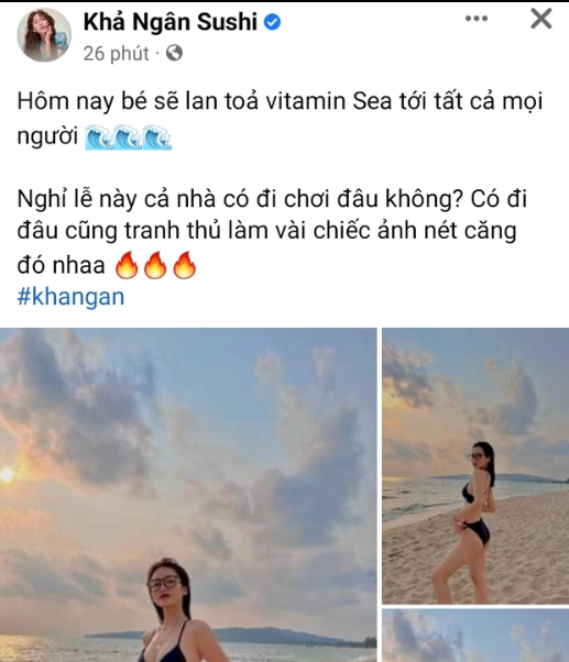 Mùa hè đang dần đến, các mỹ nữ của showbiz Việt thi nhau khoe dáng khi đi biển. Mới đây nhất Khả Ngân đã gây sốt khi tung loạt ảnh vô cùng nóng bỏng và quyến rũ khi diện bikini. Cô khéo léo khoe trọn vòng 1 với chiếc áo hai dây mỏng tang, dân tình không khỏi đỏ mặt khi zoom cận cảnh.