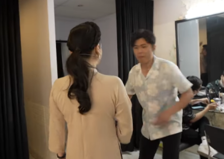 Lâm Vỹ Dạ bước vào phòng hóa trang nói lớn: "Mọi người ơi, bây giờ là 12 giờ rưỡi rồi đấy. Ngày hôm qua nhà sản xuất nói 12 giờ bấm máy mà hôm nay 12 rưỡi rồi vẫn chưa ai ra trường quay là sao. Puka đến giờ này vẫn chưa đánh má hồng, chưa tô son. BB Trần còn đang đeo trang sức. Khả Như thì vẫn đang ngồi ăn. Khánh Vân mang tiếng là hoa hậu mà tác phong chậm chạp, đến giờ còn đi một bên dép một bên giày, không có sự chuẩn bị gì cả, không ra thể thống gì".