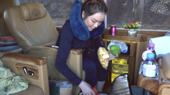 Vì số người theo Lý Nhã Kỳ khá đông nên cô nàng sẵn sàng dùng 3 chiếc ô tô cỡ lớn để chở nhân viên di chuyển. Riêng cô nàng ngồi một chiếc ô tô hạng sang của riêng mình với đầy đủ tiện nghi, nội thất sang trọng và có dán logo riêng thương hiệu của Lý Nhã Kỳ.
