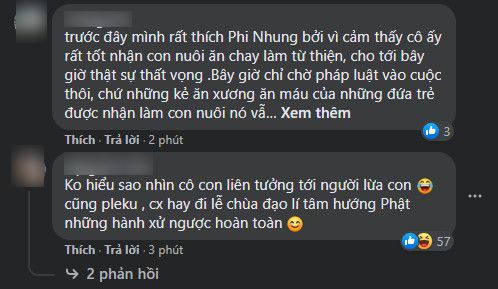 Ngay lập tức, cư dân mạng không những tán thưởng cô mà còn bất bình và thả hàng loạt phẫn nộ trong bài đăng. Nhiều người cho rằng Phi Nhung đang làm màu khi chụp những bức ảnh đó, “Hai ông đàn ông đứng làm cảnh đi cho chị chụp hình cái” hay “Cả đống đàn ông không ai phụ chị, để chị ôm hết ...lên hình haha” là những bình luận mà CĐM để lại trong bài đăng của cô.