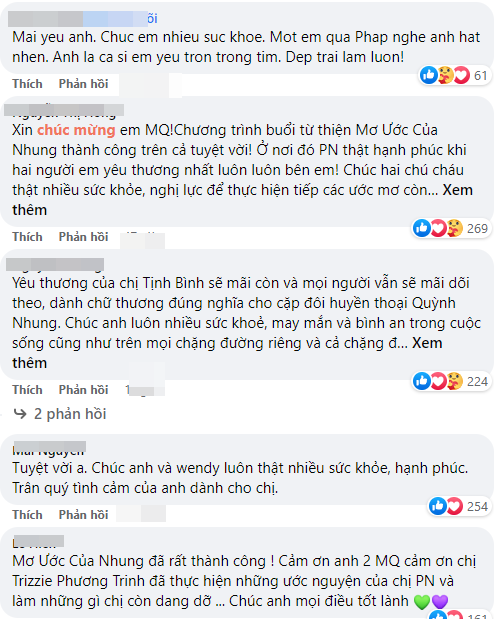 -Tuyệt vời a. Chúc anh và wendy luôn thật nhiều sức khỏe, hạnh phúc. Trân quý tình cảm của anh dành cho chị.