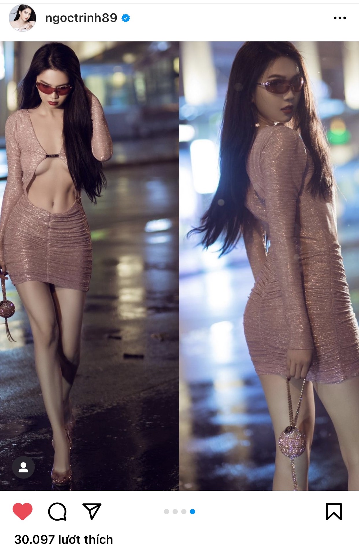 Mới đây Ngọc Trinh khiến dân tình không khỏi ngỡ ngàng và ngạc nhiên với độ sexy trong bộ ảnh mới. Theo đó cô nàng đã diện một phong cách vô cùng táo bạo khi dạo phố trong đêm. Trong shoot hình lần này, Ngọc Trinh lựa chọn cho mình bộ đồ tông hồng với thiết kế không thể hơ hơn, toàn bộ phần ngực và eo của cô nàng như được ‘lộ thiên’ trước ống kính máy ảnh.