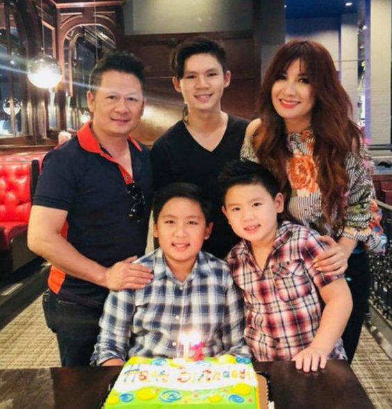 "Cảm ơn bà bạn Trizzie Phương Trinh đã nuôi nấng, dạy dỗ và chăm sóc các con ngoan ngoãn khỏe mạnh. Với người bình thường thì 1 đứa con đã là khó khăn để nuôi dạy, đây những 3 ông thì chỉ có là super mom mới làm được. Luôn trân trọng và biết ơn những gì bà bạn làm cho các con. Sau này Kenzi có em chắc nhờ bà bạn nuôi hộ luôn".