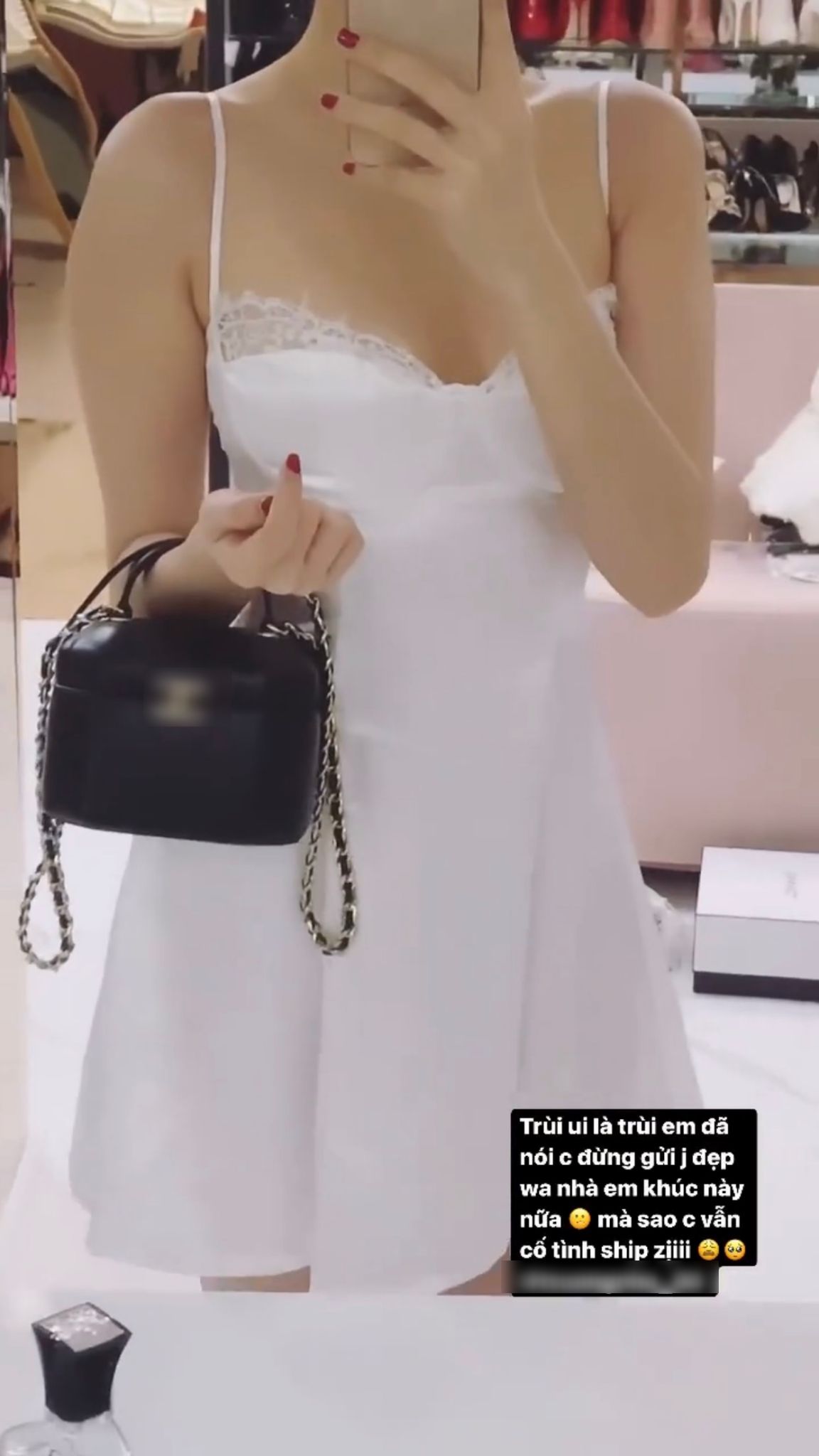 Chiều 22/7, Ngọc Trinh khiến người hâm mộ cũng như khán giả nóng mặt khi đăng tải đoạn story vô cùng quyến rũ. Cụ thể, trên Instagram của “Nữ hoàng nội y” đăng tải đoạn video cô được tặng quà từ một người bạn thân. Trong đó, Ngọc Trinh diện cho mình chiếc áo hai dây ngắn cũn cỡn khiến khiến không ít người đỏ mặt khi xem.