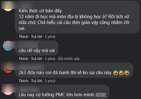 - Kiến thức cơ bản đấy, 12 năm đi học mà môn địa lý không học à? Rồi lịch sử nữa chứ. CHả hiểu cái câu đơn giản vậy cũng nhầm rồi sai.