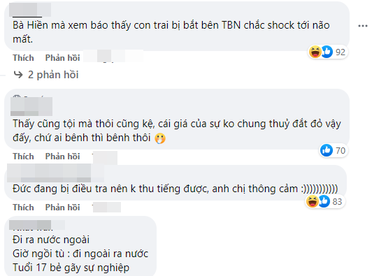 - Bà Hiền mà xem báo thấy con trai bị bắt bên TBN chắc shock tới não mất.