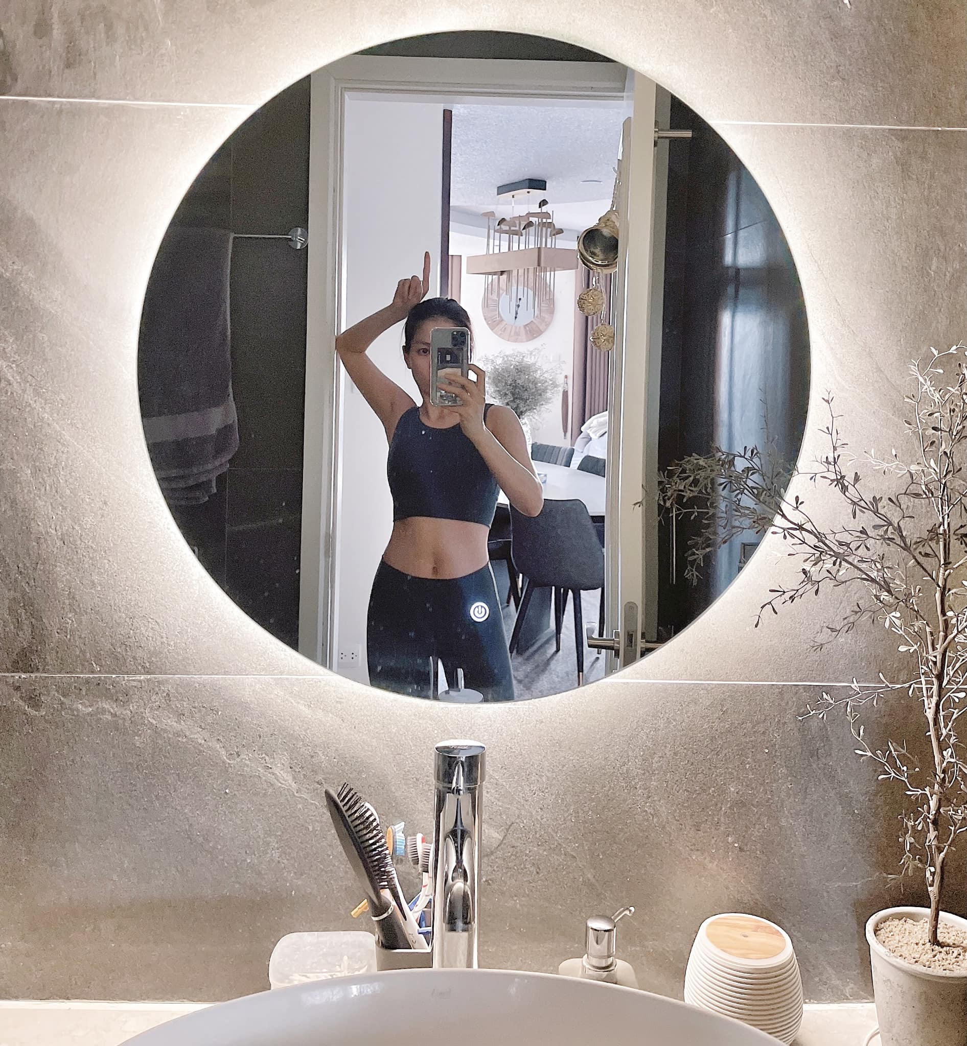 Mới đây, Lệ Quyên tiếp tục khiến hội chị em phải ghen tỵ khi đăng loạt ảnh với body săn chắc lên tài khoản cá nhân. Cụ thể, giọng ca Duyên phận diện bộ đồ gym màu xám bó sát, khoe trọn đường cong cơ thể quyến rũ. Nữ ca sĩ cũng khéo léo khoa được vòng eo “đồng hồ cát” và vòng 1 căng tràn. Cô cho biết đây là thời gian cố định mà mình sẽ tập luyện và đổ mồ hôi.