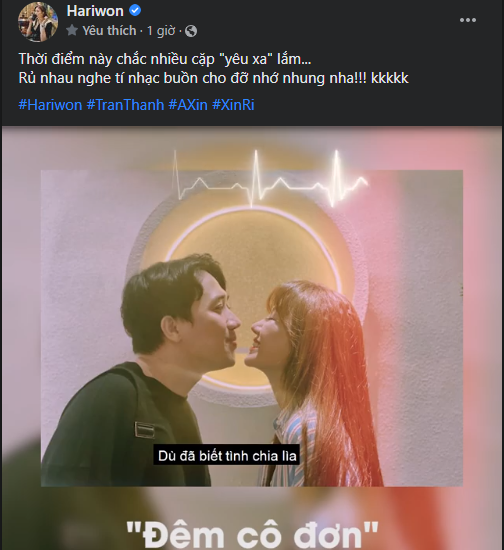 Ngay lập tức, quan điểm này của anh nhận về vô số ý kiến trái chiều từ phía cộng đồng mạng. Bà xã Hari Won của anh cũng đã có động thái mới nhất trên fanpage cá nhân. Cụ thể, cô nàng chia sẻ lại một clip trong đó có hình ảnh mình và Trấn Thành đang vui cười rất tươi kèm dòng trạng thái: “Thời điểm này chắc nhiều cặp “yêu xa” lắm… Rủ nhau nghe tí nhạc buồn cho đỡ nhớ nhung nha”.