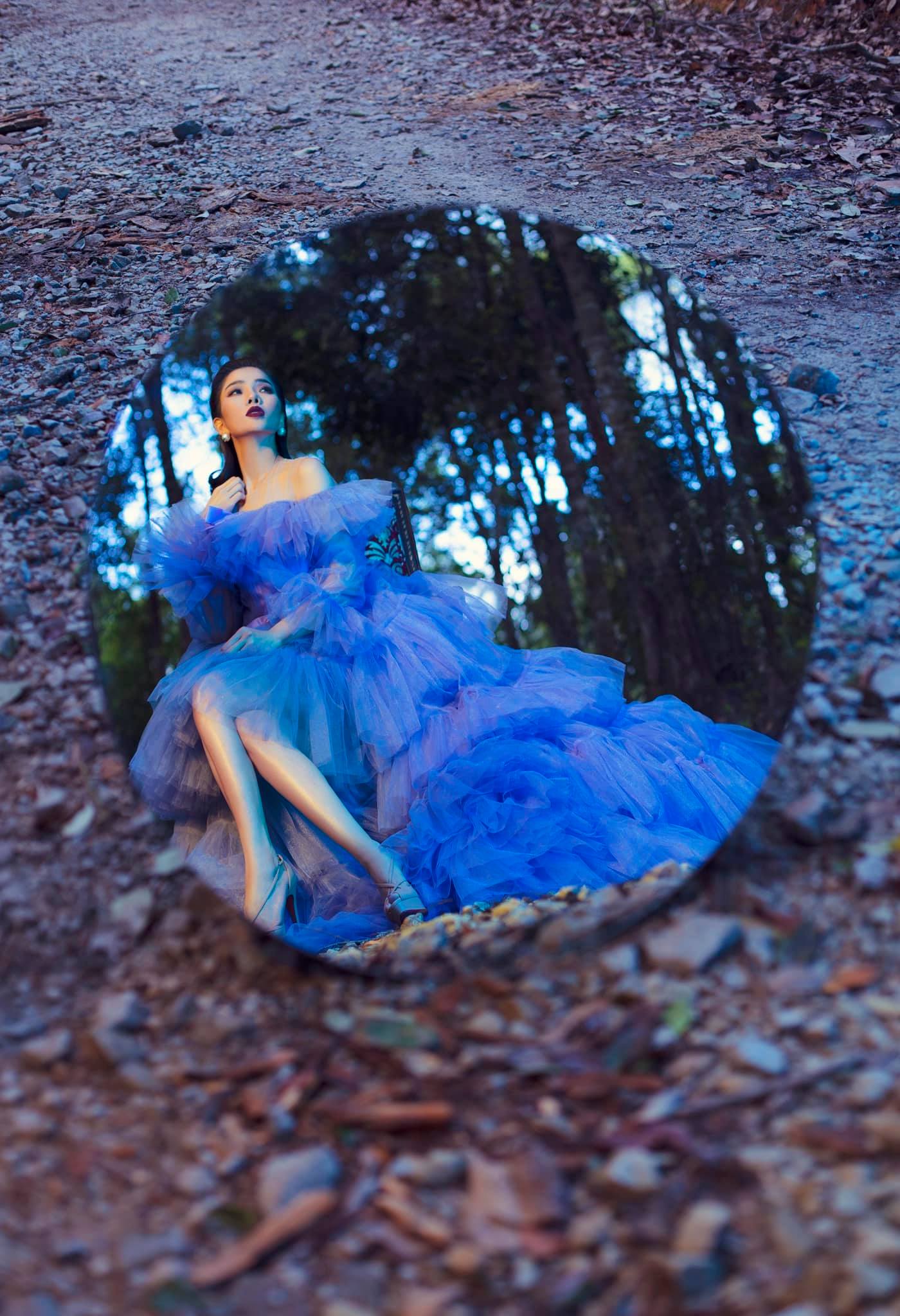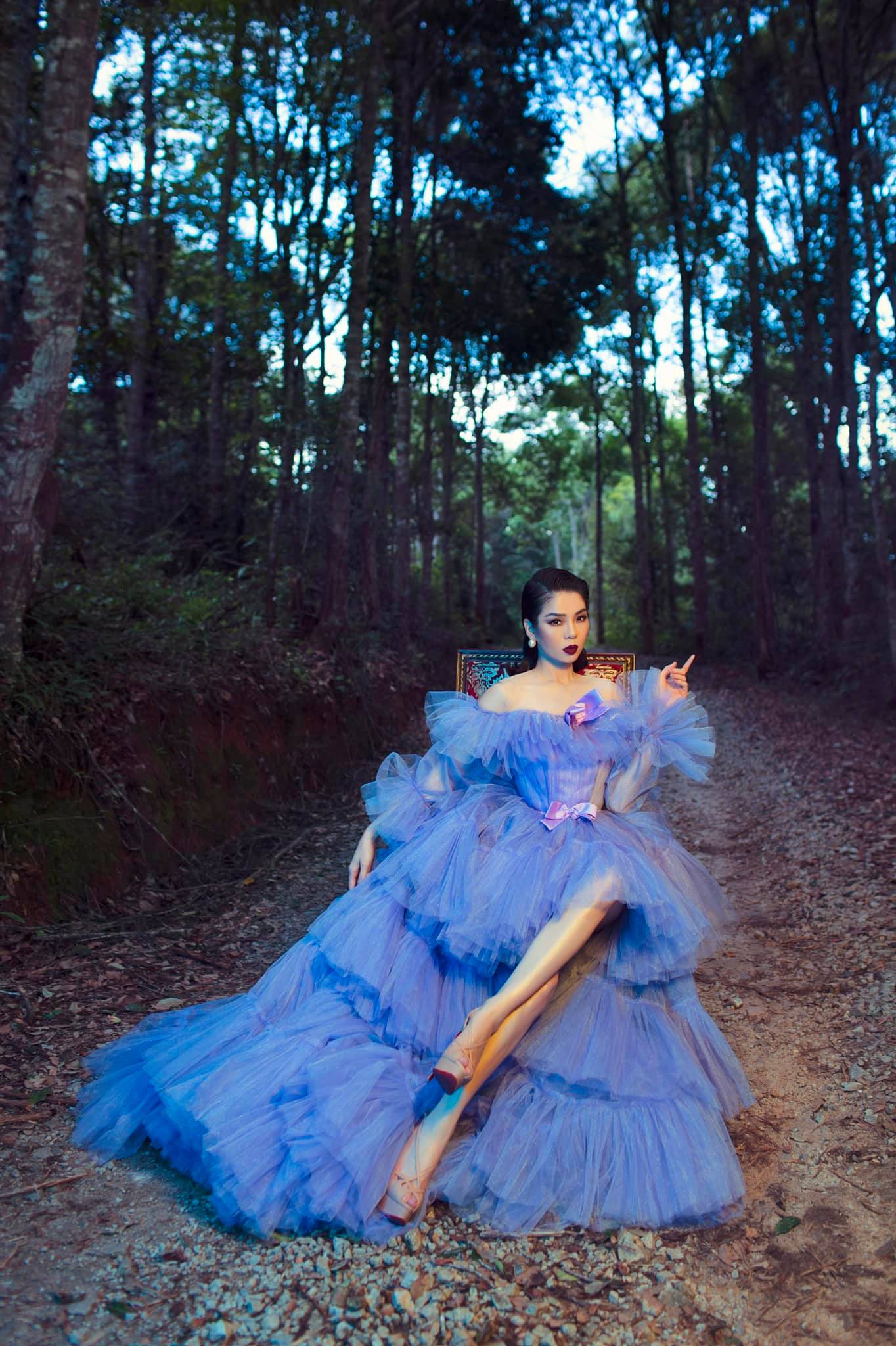 Mới đây, nữ ca sĩ Lệ Quyên khiến khán giả ngỡ ngàng khi tung loạt ảnh với bộ váy xanh huyền bí. Cụ thể, cô nàng đăng tải loạt ảnh với chiếc váy xanh dạ hội bồng bềnh xanh dương, tôn lên làn da trắng sáng của mình. Với lối make up đậm cộng thêm đường nét trên khuôn mặt, nữ ca sĩ khiến người hâm mộ chìm vào khung cảnh huyền bí.