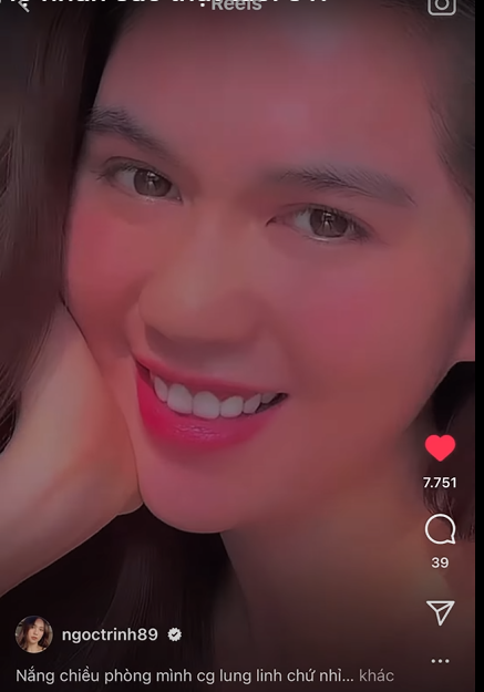 Mới đây, trên trang cá nhân của mình, Ngọc Trinh đã đăng tải đoạn clip quay cận cảnh gương mặt của mình. Trong clip, người đẹp khoe được làn da săn chắc cùng đôi môi hồng hào quyến rũ. Sở hữu làn da căng mịn dù đã bước sang tuôi 31, Ngọc Trinh khiến chị em ghen tỵ vì dường như cô ngày càng trẻ hóa.