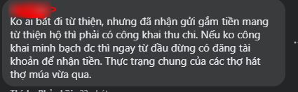 Thời gian qua, việc nhiều nghệ sĩ bị cư dân mạng chỉ trích vì không minh bạch được số tiền từ thiện đã không còn quá xa lạ. Một số tên tuổi lớn như Hoài Linh đã phải đứng ra xin lỗi khán giả vì bị khui chuyện “ngâm” tiền từ thiện mà không hề có một lời thông báo. Từ đó, niềm tin của khán giả với nghệ sĩ trong vấn đề kêu gọi từ thiện đã xấu đi nhiều.