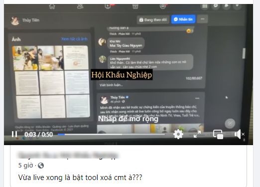 Ngoài ra, việc livestream quá nhanh, không giải đáp được thắc mắc của cư dân mạng cũng khiến không ít người cảm thấy khó chịu. Đặc biệt hơn, một tài khoản nhanh chóng phát hiện ra điều bất thường dưới phần bình luận của livestream.