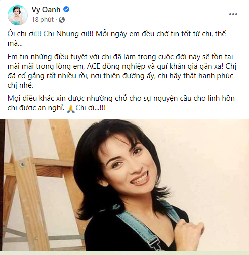 Thời gian qua, NS Việt Hương là một trong những người được con gái ruột của Phi Nhung ủy quyền nắm bắt thông tin nữ ca sĩ trong bệnh viện. Nữ danh hài cũng là người đã trực tiếp đưa Phi Nhung vào viện để kịp thời chữa trị. Những ngày qua, nhận nhiều thông tin về Phi Nhung nhưng Việt Hương cũng rất ít khi chia sẻ lên MXH nhằm hạn chế thông tin tiêu cực về tình hình sức khỏe của giọng ca Bông điên điển.
