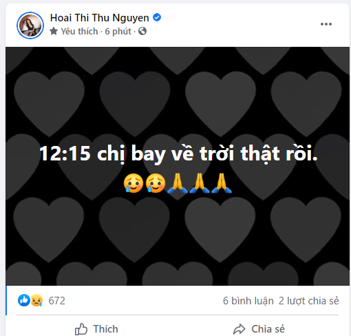 Việt Hương sẽ có những thông báo chính thức sau khi các thủ tục hậu sự đã được sắp xếp chu đáo.