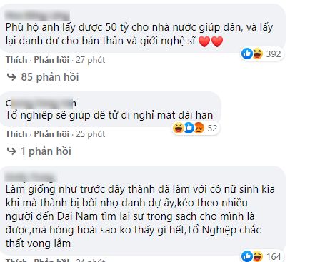 Bài đăng của Trấn Thành nhanh chóng nhận được sự quan tâm của nhiều netizen. Có người đã vào bình luận ủng hộ, động viên anh có thể vượt qua khó khăn trước mắt để chuẩn bị cho con đường phía trước. Tuy nhiên, vẫn có nhiều người chỉ trích, mỉa mai Trấn Thành với những drama vừa qua.