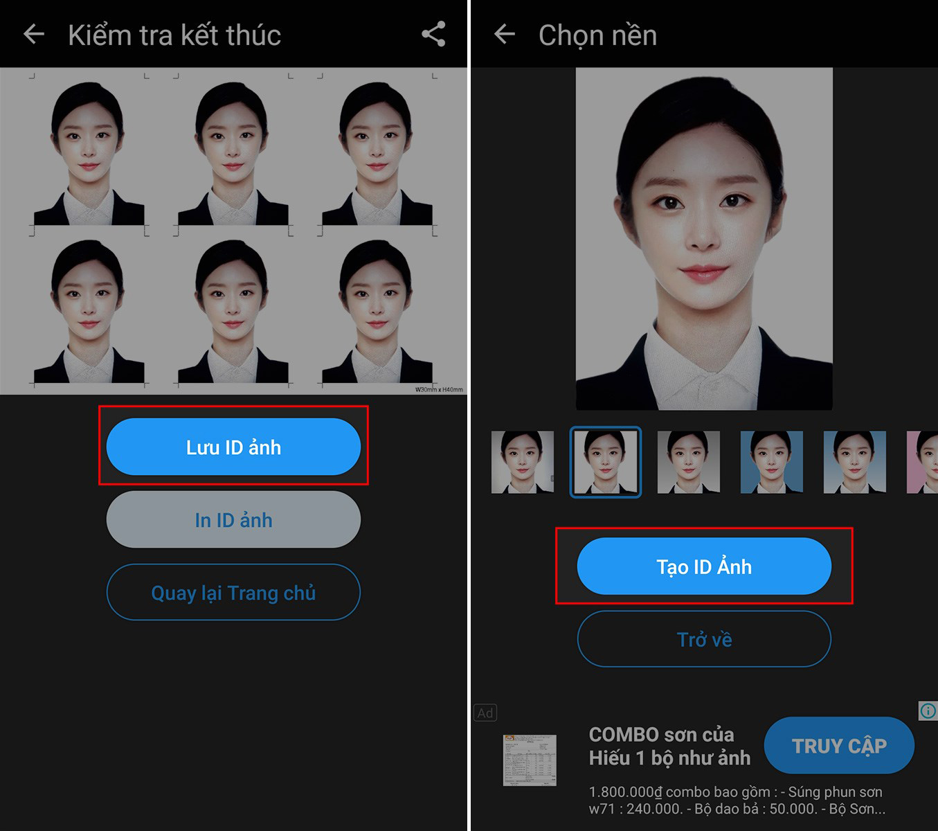 Bước 5: Tạo ID ảnh và lưu ảnh về máy. Vậy là thành công rồi.
