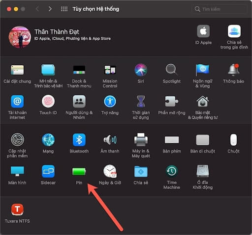 Đầu tiên, bạn vào “Tùy chọn Hệ thống” ở thanh dock dưới màn hình và chọn Pin.