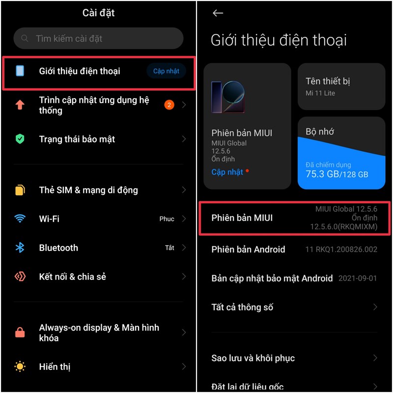 Đầu tiên, vào phần giới thiệu điện thoại rồi nhấn 5 lần vào phần phiên bản MIUI cho đến khi bạn trở thành nhà phát triển.