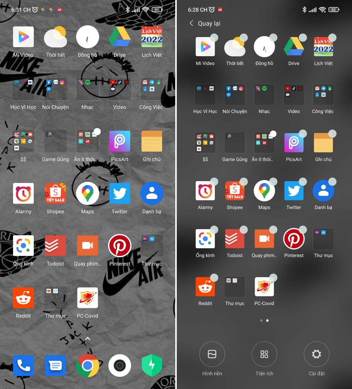Đầu tiên, bạn nhấn giữ vào màn hình và chọn vào phần Cài đặt