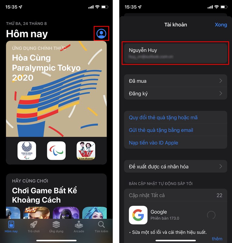 Bước 1: Bạn mở ứng dụng App Store > chọn Tài khoản > nhấn Apple ID.