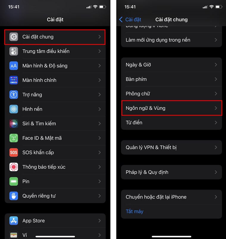 Bước 4: Tiếp tục, bạn vào Cài đặt > Cài đặt chung > Ngôn ngữ & Vùng.