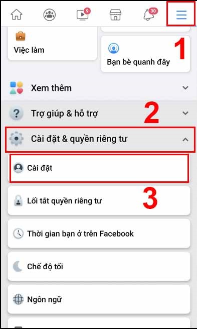 Đối với AndroidĐầu tiên bạn Vào Facebook > Chọn Menu > Chọn Cài đặt & quyền riêng tư > Cài đặt