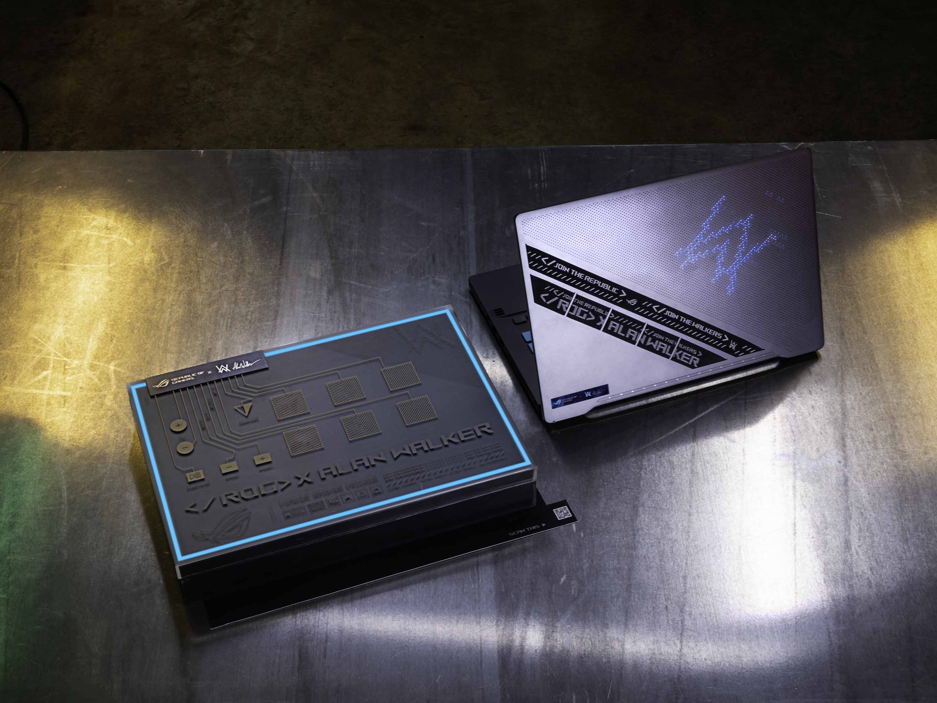 Chiếc laptop này thậm chí còn có hình ảnh khởi động được tùy biến và hình nền Alan Walker. Bàn di chuột được phủ kính với những họa tiết sóng nhạc, cùng với bàn phím với chủ đề và màu sắc đặc trưng của Alan Walker, với các phím A và W là logo của anh ấy. Bên cạnh đó, bạn cũng sẽ được tặng kèm một chiếc mũ lưỡi trai và bít tất mang phong cách Alan Walker và ROG, cùng với một túi chống sốc ROG Sleeve như là một biểu tượng của game thủ phong cách.