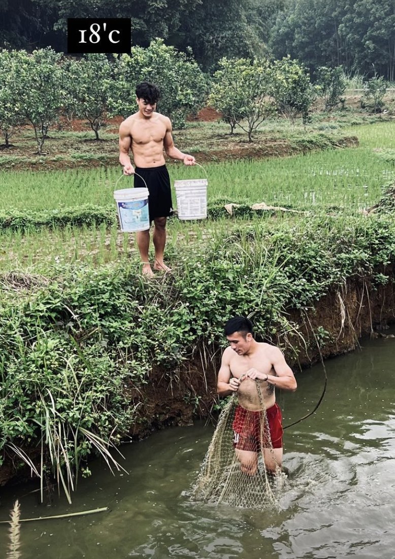 Hai anh em Bùi Tiến Dũng và Bùi Tiến Dụng đã trở về Thanh Hóa ăn Tết cùng gia đình vào ngày 28/1. Mới đây, thủ thành Bùi Tiến Dũng đã đăng tải lên trang cá nhân hình ảnh đi bắt cá cùng bố và em trai. Dù thời tiết rất lạnh nhưng 2 ngôi sao trong chiến tích Thường Châu của U23 Việt Nam vẫn khiến người hâm mộ trầm trồ khi khoe thân hình vạm vỡ, cơ bắp cuồn cuộn.