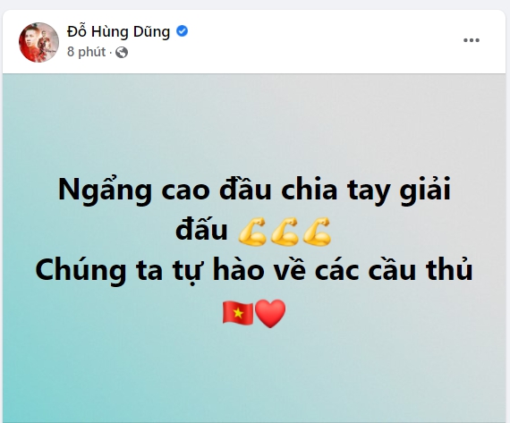 Ngay sau trận đấu này, tiền vệ Đỗ Hùng Dũng đã có những chia sẻ để động viên tinh thần của các đồng đội tại Singapore. Trên trang cá nhân của mình, cầu thủ sinh năm 1993 viết: "Ngẩng đầu chia tay giải đấu. Chúng ta tự hào về các cầu thủ." Những lời động viên của Hùng Dũng chắc chắn sẽ giúp ĐT Việt Nam gác lại nỗi buồn để hướng đến những mục tiêu xa hơn. Tuy nhiên, điều này càng khiến cho người hâm mộ thêm tiếc nuối bởi sự vắng mặt của tiền vệ 28 tuổi ở giải đấu năm nay. Nếu như Hùng Dũng có thể hội quân cùng toàn đội ở Singapore thì HLV Park Hang-seo đã có thêm một quân bài đầy chất lượng trong tay.