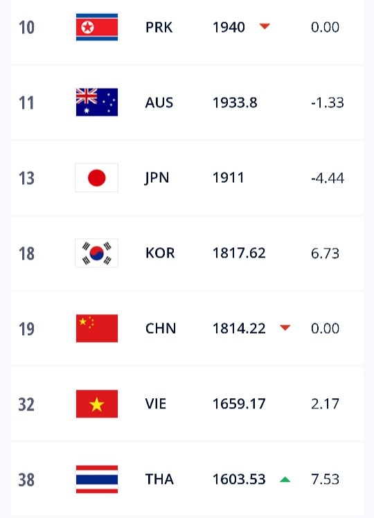 Tuyển nữ Việt Nam đang xếp hạng 32 Thế giới và thứ 6 châu Á theo BXH FIFA tháng 12/2021.