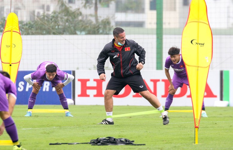 Ngày 16/3, đội tuyển U23 Việt Nam tiếp tục tập luyện dưới sự chỉ đạo của HLV thể lực Cedric Roger.