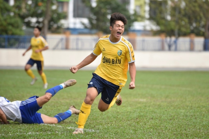 Quốc Việt ăn mừng sau khi ghi bàn cho U19 Nutifood.