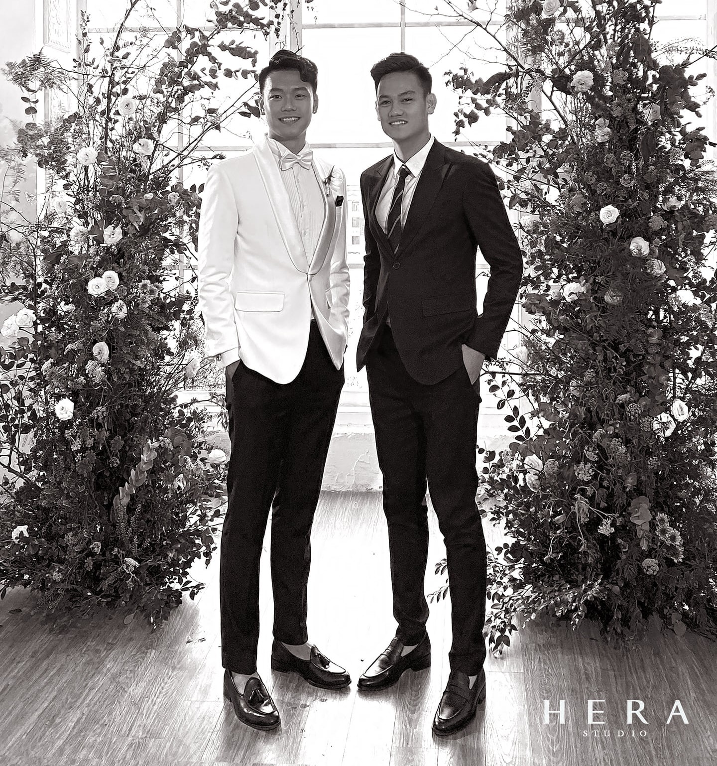 Thành Chung và Hồ Tấn Tài rủ nhau chụp ảnh cưới.