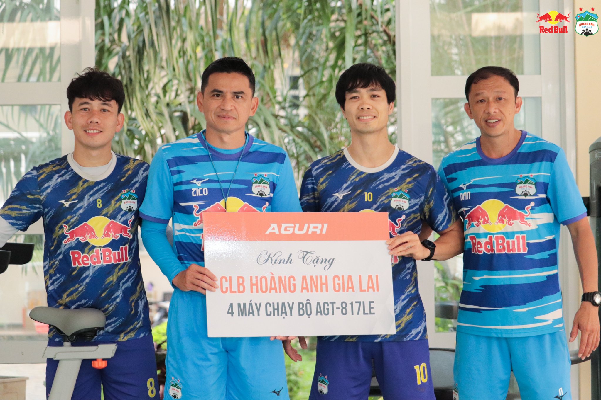 Tiền đạo Nguyễn Công Phượng - Đại sứ thương hiệu AGURI mới đây đã tặng 4 máy chạy bộ và 5 chiếc xe đạp cho CLB HAGL.