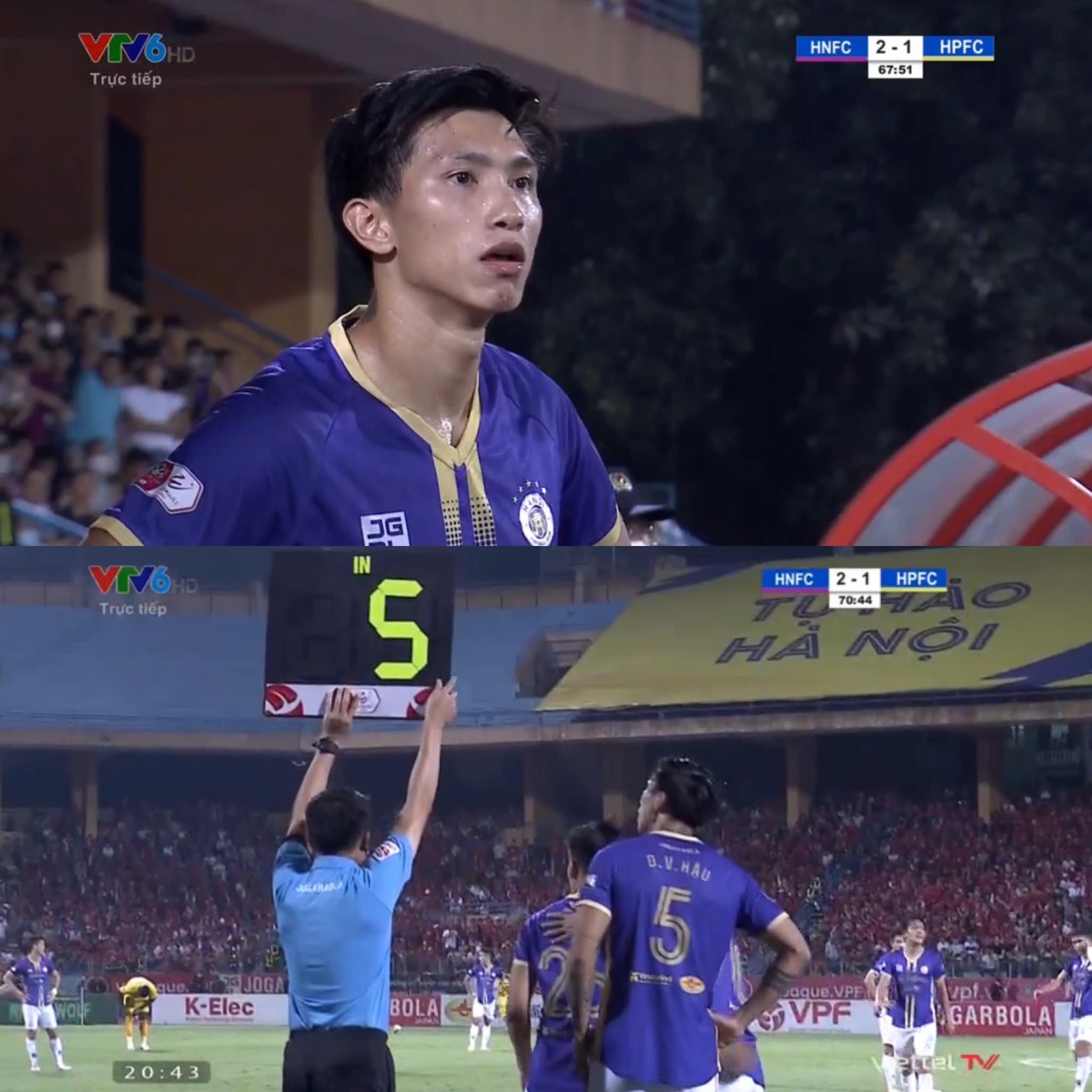 Đoàn Văn Hậu được tung vào sân ở trận đấu với Hải Phòng.