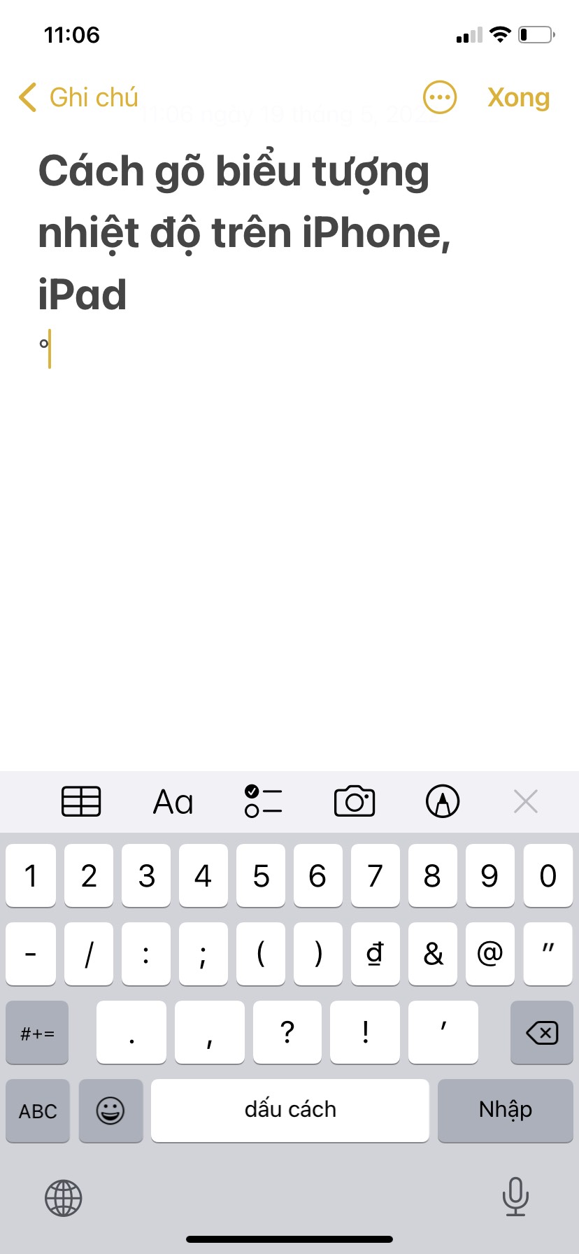 Bạn có thể thực hiện theo các bước đơn giản sau để nhập biểu tượng độ trên iPhone hoặc iPad của bạn: