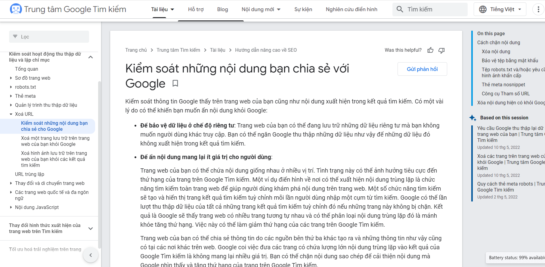 Các tuỳ chọn để xoá thông tin xuất hiện trong kết quả tìm kiếm hoặc ngăn thông tin hiển thị trong các tìm kiếm. Với tuỳ chọn thứ hai, bạn sở hữu trang web với thông tin bạn không muốn hiển thị, Google sẽ giải thích cách chặn link URL hoặc các trang cụ thể khỏi kết quả tìm kiếm của Google. Nó liên quan đến các tệp robots.txt, thẻ meta và các tệp trang bảo vệ bằng mật khẩu.