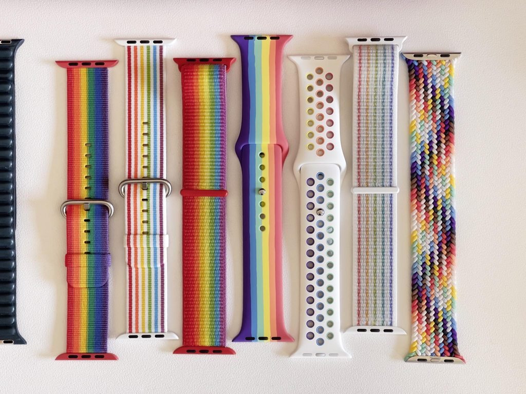 Dây đeo Pride Edition năm nay có từ “Pride” được dệt trực tiếp bằng nhiều màu sắc. Gradient màu của dây đeo bao gồm 7 sắc cầu vồng và màu sắc từ các lá cờ của cộng đồng LGBTQ+ như xanh lam nhạt, hồng, trắng, đen và nâu. Còn dây đeo kết hợp với Nike lại có tông màu chủ đạo tối hơn nhưng vẫn giúp tôn vinh những màu sắc của lá cờ LGBTQ+.