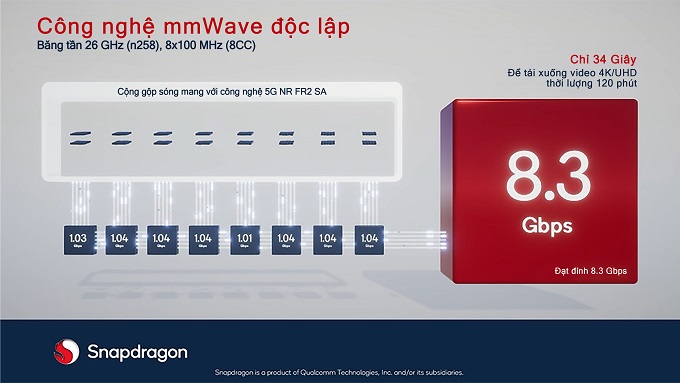 Kết nối mmWave 5G độc lập đầu tiên trên thế giới, với tốc độ tối đa 8 Gbps: tốc độ này đạt được khi sử dụng bộ công cụ 5G Protocol R&D Toolset của Keysight với thiết bị 5G thử nghiệm được hỗ bởi Snapdragon X70. Cột mốc quan trọng này đã diễn ra tại chính phòng thí nghiệm Tích hợp và Thử nghiệm 5G của Qualcomm Technologies ở San Diego.